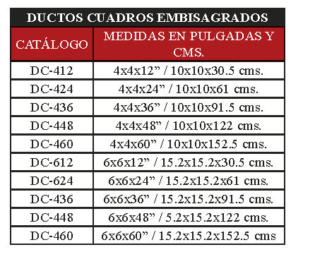 • Se fabrican en medidas 2.5X2.5, 4x4, 6x6, 8x8 y 10x10 pulgadas de sección transversal.